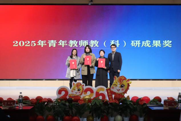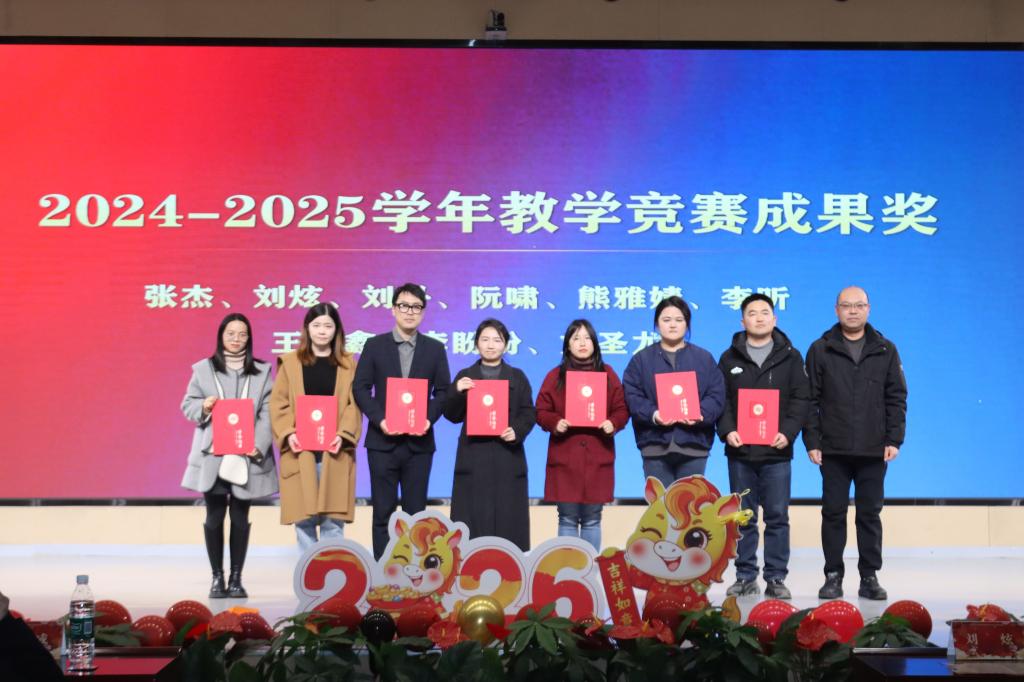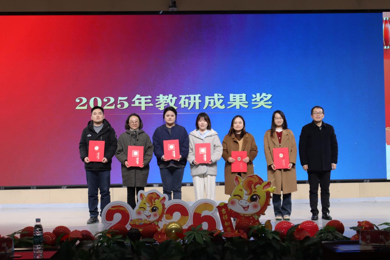 精彩的表演过后,晚会进入隆重的颁奖环节。由校党委书记杜永成分别为“教师教研成果奖”和“教师科研成果奖”获奖教师颁奖。其中,“教师教研成果奖”一等奖由王淋鑫老师获得,陈蕾、魏紫熙老师获二等奖,刘圣龙、沈瑾、余芬老师获三等奖;“教师科研成果奖”一等奖由张蕾老师获得,丁浩、王玮婧老师获二等奖,李昕、李盼盼、刘涛老师获三等奖。教学副院长刘炫为“青年教师教科研成果奖”获奖教师寇玉典、汪泉、张杰颁奖。