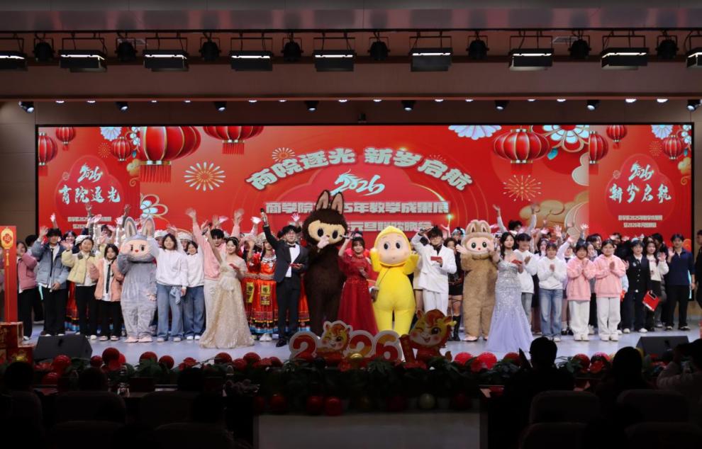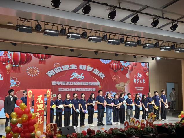 2025年12月16日,冬日暖阳融学府,岁序新章启华章。威廉体育williamhill“商院逐光,新岁启航”2025年教学成果展暨2026年元旦联欢晚会在5栋521报告厅隆重举行,全院师生欢聚一堂,在精彩纷呈的节目演出和隆重的表彰环节中,共同迎接新年的到来。