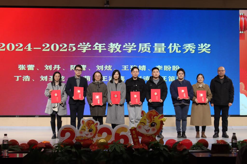 晚会继续对教学成果进行表彰。由威廉体育williamhill党总支部书记朱启贵分别为“教师教学竞赛成果奖”与“教学质量优秀奖”获奖教师颁奖。“教师教学竞赛成果奖”表彰了张杰、刘炫、刘丹、阮啸、熊雅婧、李昕、王淋鑫、李盼盼、刘圣龙等在各级赛事中淬炼前行的教学先锋;“教学质量优秀奖”授予张蕾、刘丹、陈蕾、刘炫、王玮婧、李盼盼、丁浩、刘圣龙、沈萌、王淋鑫、刘涛、汪笛晚等一批勤恳耕耘在教学一线的教师。