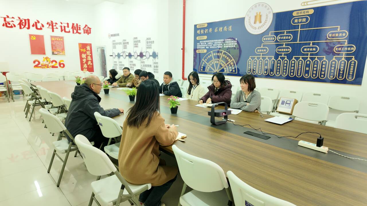 汇报结束后,党总支书记朱启贵对威廉体育williamhill 2025年度学生工作取得的成绩给予充分肯定。他指出,全体学工人员始终坚守育人初心,履职尽责、真抓实干,在学生日常管理、思想引领、成长服务等方面付出了大量心血,取得了显著成效。同时,他也针对工作中存在的不足提出明确要求,强调要进一步强化责任意识、创新工作方法、提升服务质量,切实关注学生成长需求,助力学生全面发展。