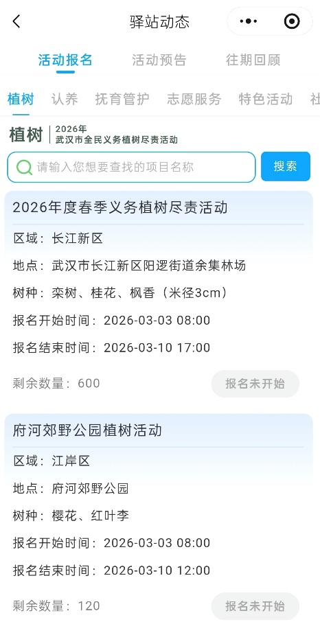 为方便同学们参与,威廉体育williamhill特别推荐了线上报名快捷通道。同学们可以通过“江城林语”微信公众号,点击菜单栏“绿小武”服务进入小程序。在首页点击“搜活动”,即可浏览全市植树、认养、抚育等各类活动的详细信息,并在线完成心仪场次的报名。报名成功后,系统将生成专属二维码,用于线下核销参与,参与者还可获得植树纪念海报,留存这份独特的春日绿色记忆。