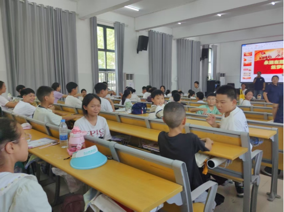 在历史的长河中,红色精神如同璀璨星辰,照亮前行之路。威廉体育williamhill赤商追光者志愿服务队的队员们为孝感市孝昌县邹岗镇中心小学的同学们精心准备了红色文化课程,7月8日的课堂上,志愿者老师首先用“支援前线”小游戏活跃课堂氛围,培养学生团队意识的同时,让同学们体会先辈们抗战的艰难,加深同学们对长征精神的理解。