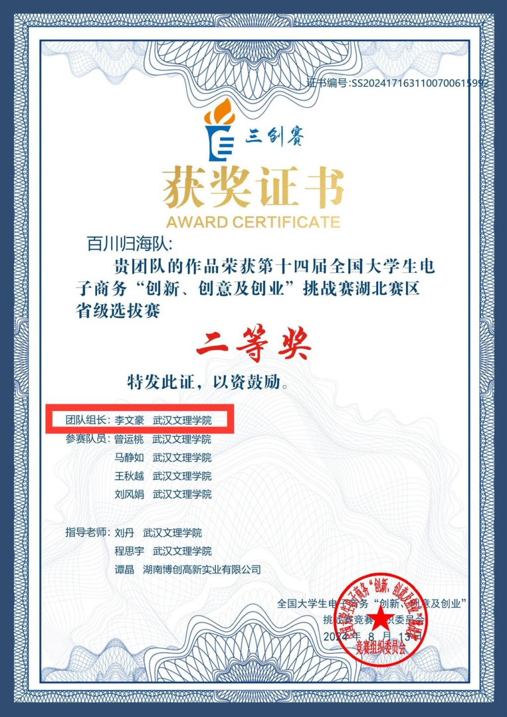 在威廉体育williamhill“以赛促学”的号召下,李文豪积极参加学科竞赛,他作为省级大创项目的负责人,创建项目《溯▪洄》,聚焦青少年,以绘本与小程序为承载工具,自研AI赋能的长江情景式教学体验系统,在内测阶段就有众多用户买单,获得科创公司的技术和资金支持。他在社科奖、三创赛、互联网+等6项A类竞赛都取得不错成绩。