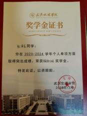 在学业上,张演龙始终保持严谨务实的态度,连续两个学年成绩名列前茅:2022-2023学年斩获一等奖学金、优秀学生干部标兵奖学金、创新创业奖学金及精神文明奖学金;2023-2024学年蝉联和润单项奖学金、二等奖学金、优秀学生干部奖学金等多项荣誉,用实力践行“品学兼优”的准则。